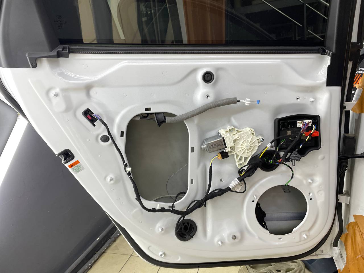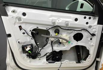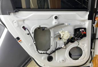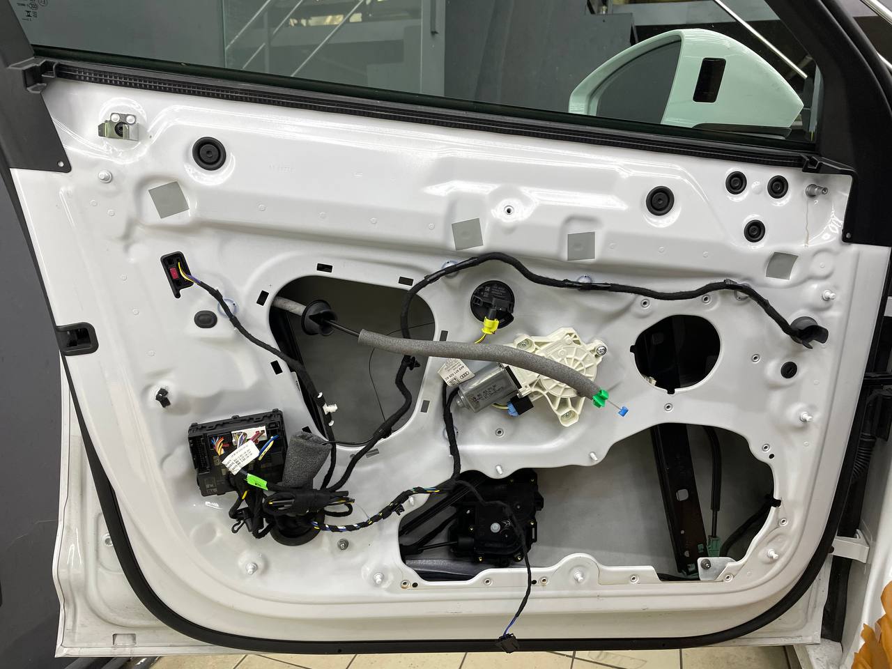 Начинаем работу с разборки дверей, подготовки поверхности и обезжириванию. Все работы по демонтажу пластика выполняются специальным инструментом. Мы гарантируем целостность клипс, креплений и отсутствие различного рода царапин, задиров на обшивках.