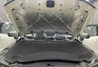В технологические отверстия капота, на внешний металл, монтируем виброизоляцию Шумофф М2 и на штатную применяем шумо-теплоизоляцию Practik Base 4.