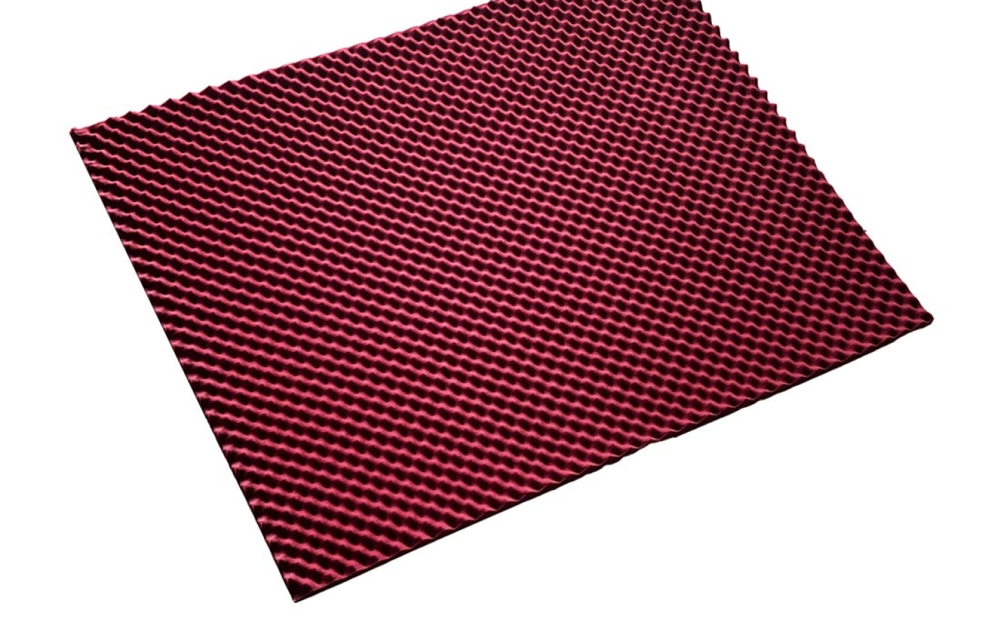 Шумофф FanTon - самоклеящийся шумопоглощающий материал бордового цвета, изготовлен на основе специального ППУ повышенной плотности и имеющий частично закрытоячеистую пористую структуру. Лицевая поверхность материал имеет рельеф в форме волн, что увеличивает диапазон рабочей частоты поглощения.