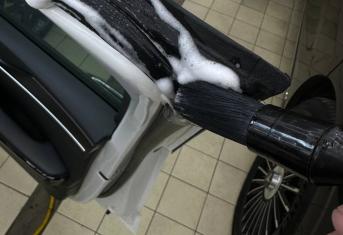 Специальные химические составы для подкапотного пространства убирают все загрязнения и отложения. Каждый уголок под капотом тщательно прорабатываем кисточками.