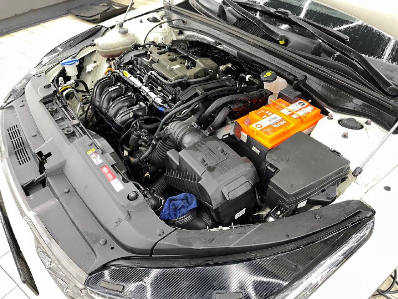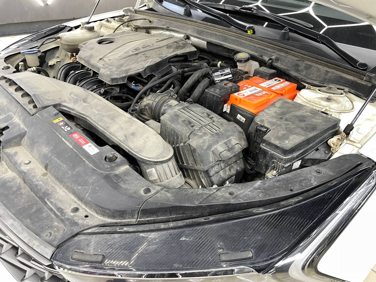 Мы потратили 2 рабочих дня на обслуживание Kia K5, что включало глубокую детейлинг химчистку салона и мойку двигателя.