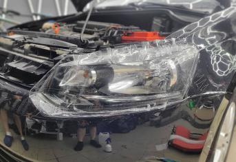 - После оклейки всех элементов автомобиль полностью собираем и делаем финишную коррекцию пленки.